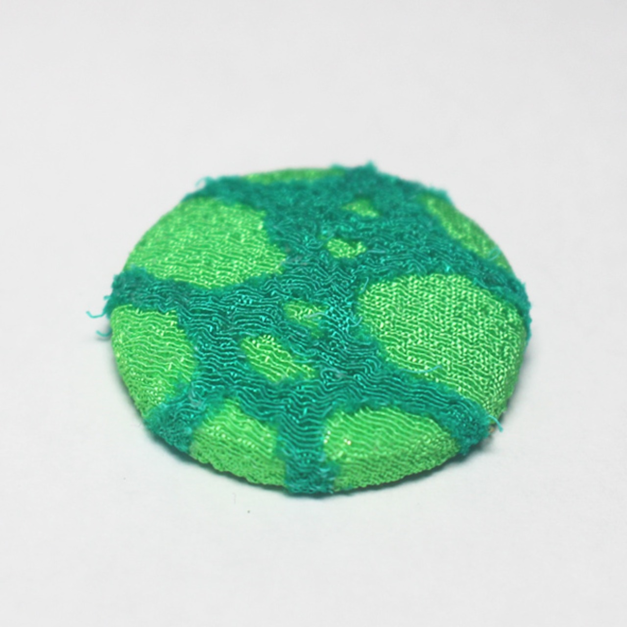 くるみボタンをちりめんの布で覆った缶バッヂで、和のテイストを感じさせる可愛らしいアイテムです。